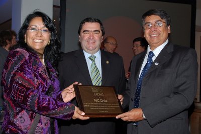 Por su parte el Rector de la Universidad de Chile, Víctor Pérez también tomó la palabra, para representar en los fundadores de NIC Chile, Patricio Poblete y José Miguel Piquer, el esfuerzo por hacer visible y viable un tema relevante para todo el país, "visibilización que pasa a ser de todos, porque no es necesario andar diciendo que esto es de la Universidad de Chile. Ellos han aportado al país una entidad reconocida internacionalmente".