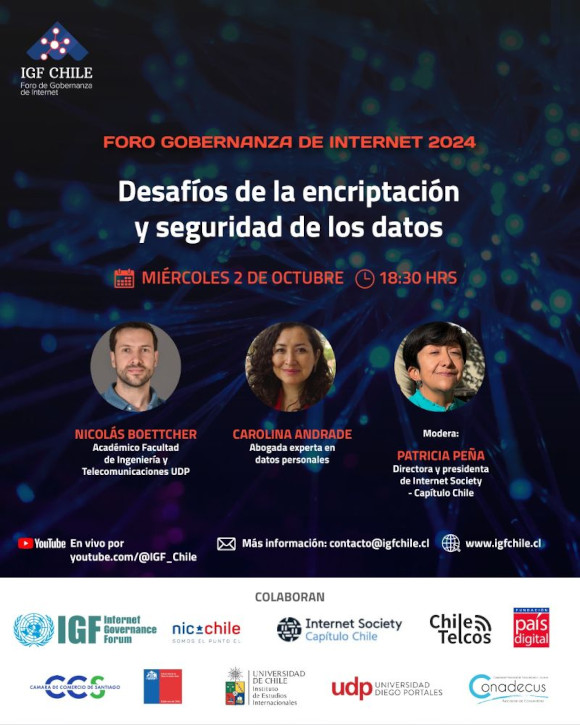 El Foro de Gobernanza de Internet en Chile realiza su penúltimo webinar del ciclo 2024 presentando este miércoles 2 de octubre a las 18:30 horas de Chile una conversación acerca de los desafíos de la encriptación y seguridad de los datos.
