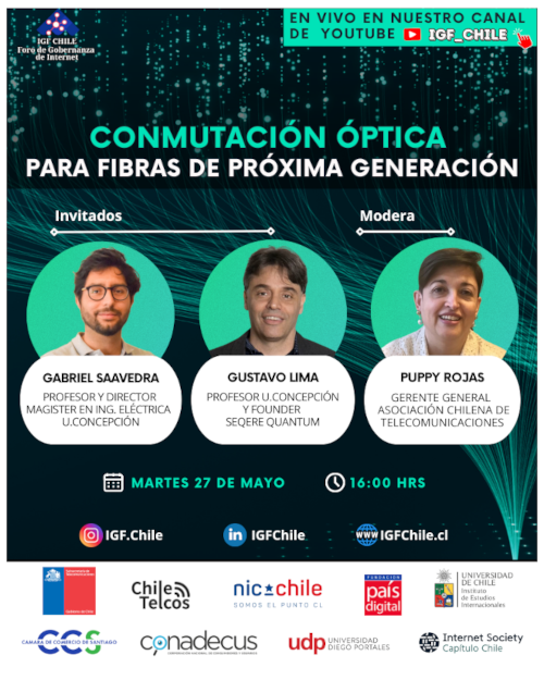El martes 27 de mayo a las 16:00 horas de Chile el Foro de Gobernanza de Internet en Chile (IGF Chile) presentará el webinar sobre Conmutación Óptica para fibras de nueva generación, sexto episodio del ciclo 2025 de conversaciones en línea que promueven la discusión y diálogo sobre la gobernanza de Internet.