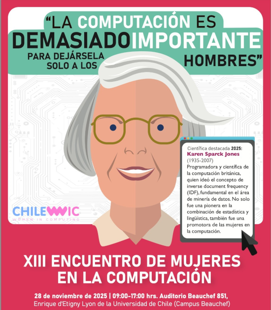La Facultad de Ciencias Físicas y Matemáticas de la Universidad de Chile recibe el XIII Encuentro de Mujeres en la Computación Chile WiC 2025, evento que se realizará el viernes 28 de noviembre de 2025 en el auditorio Enrique d’Etigny del campus Beauchef.